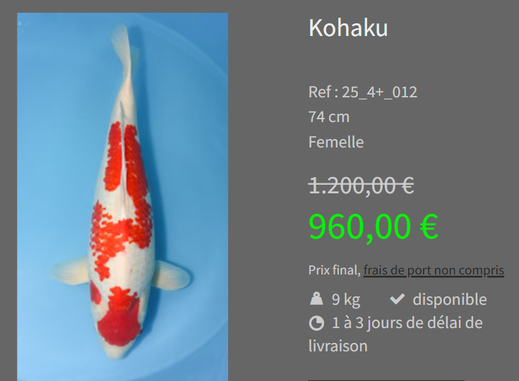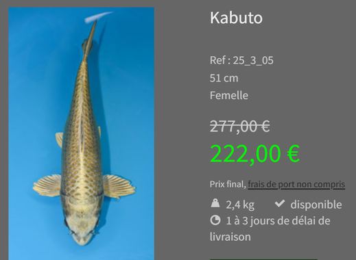 Pour venir chercher des poissons visibles sur ce site, vous pouvez les commander en les mettant dans votre panier, puis au moment du paiement, choisissez le retrait sur place. Les frais de ports seront annulés, et la facture sera à payer au moment du retrait des poissons.